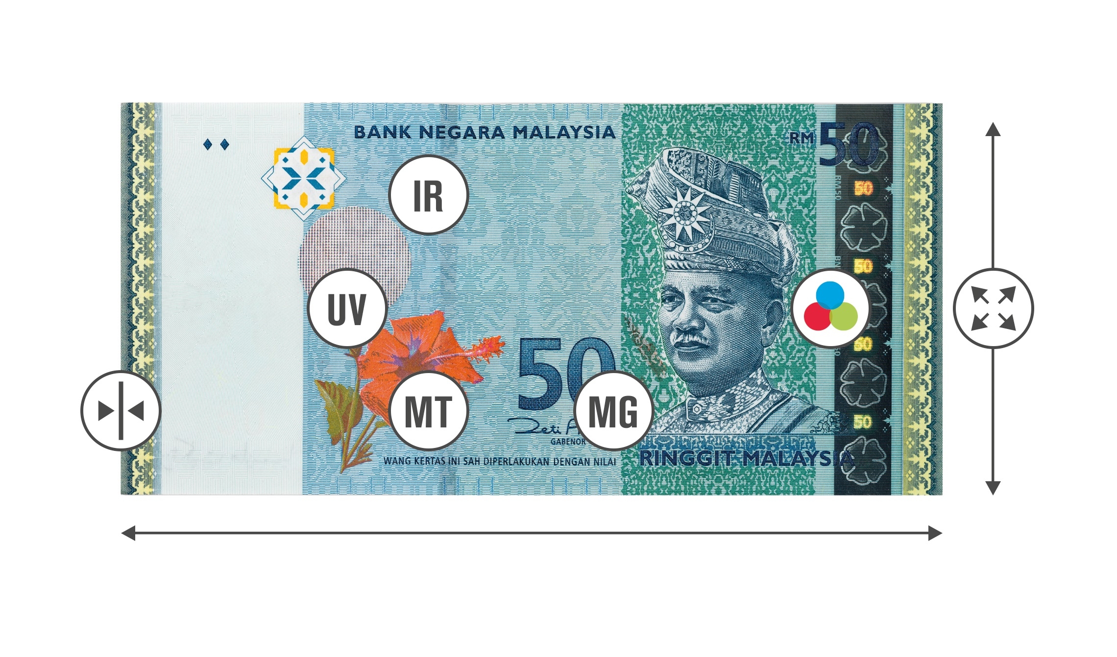 - 7-point automatic counterfeit detection: Infrared, Magnetic ink, Metallic thread, Watermark, Color, Size and Thickness