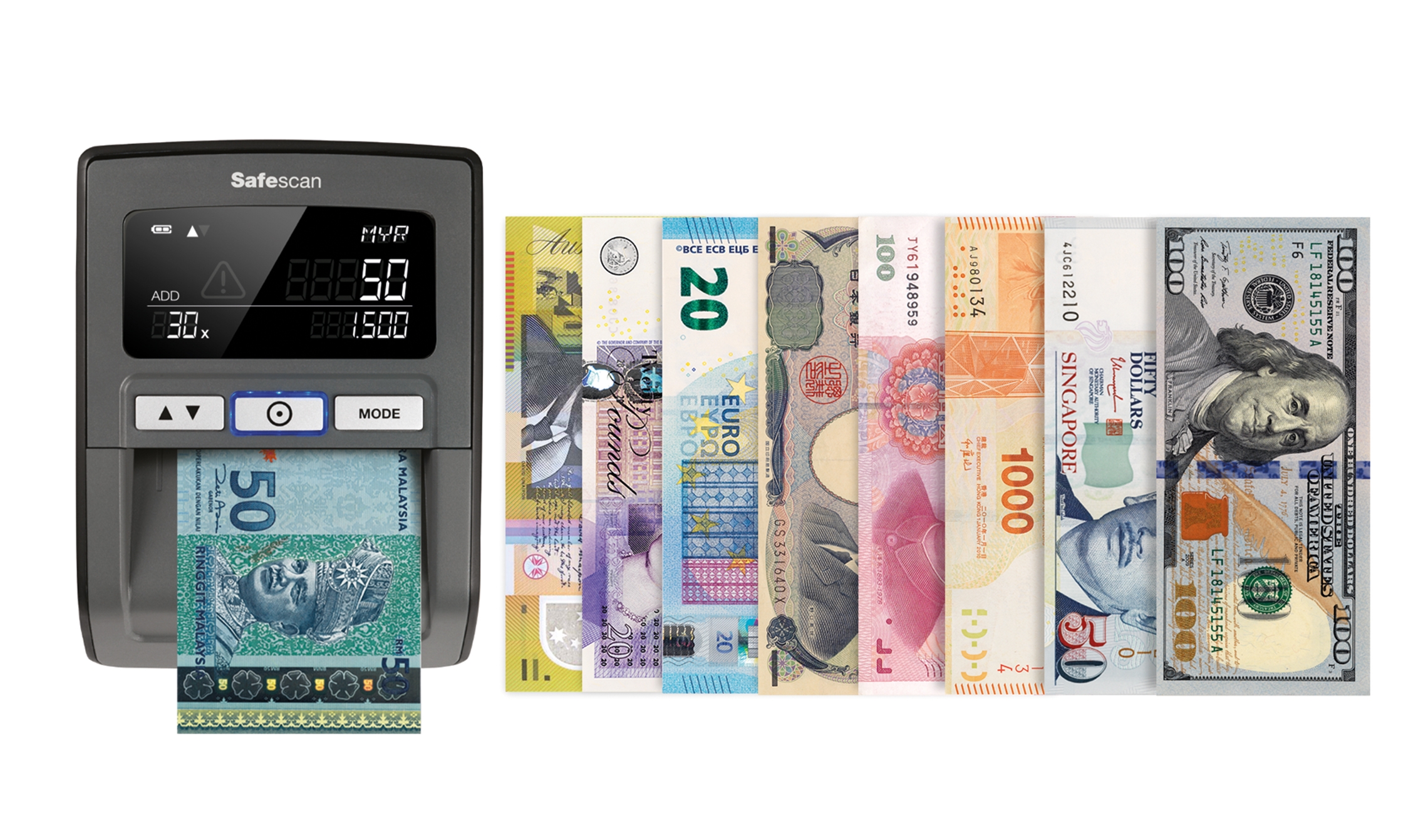 The Safescan 185-S is our most advanced counterfeit detector yet. Equipped with the latest technology, this device takes only a fraction of a second to scan currencies for seven crucial security features, no matter which way you insert them.