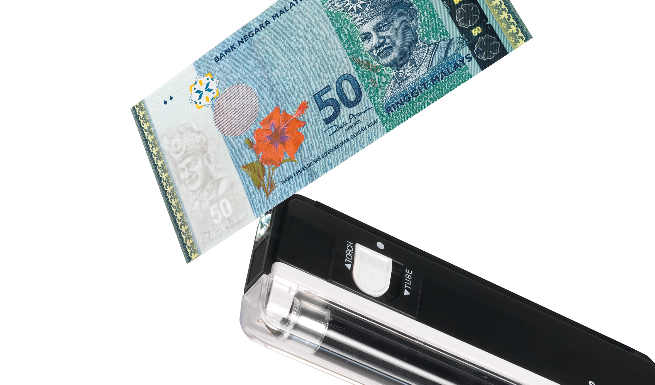 Every modern banknote has integrated UV security features that only show up under ultraviolet light at a certain frequency. The Safescan 40H is designed specifically to help you verify these features and identify potentially counterfeit banknotes.