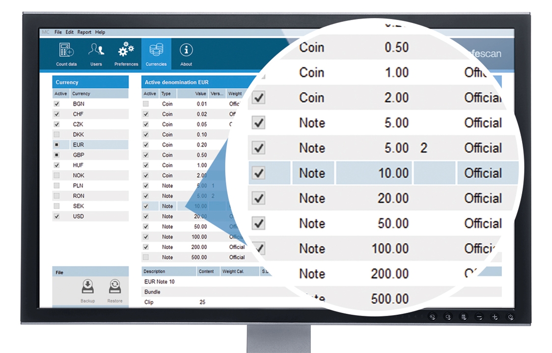 In short, integration. A money scale is a compact device that can handle all your cash counting. Banknote counters can’t count coins; coin counters can’t count banknotes. Banknote counters don’t let you enter manual values for checks and credit cards; coin counters don’t link up to cash management software. But money scales like the Safescan 6185 can do it all: count coins, banknotes, vouchers, coupons, tokens and chips; tag data with a time, date and reference number; accept manual credit-card and check values; and export all your data to cash-handling software. They are the ultimate all-in-one integrated cash counter.