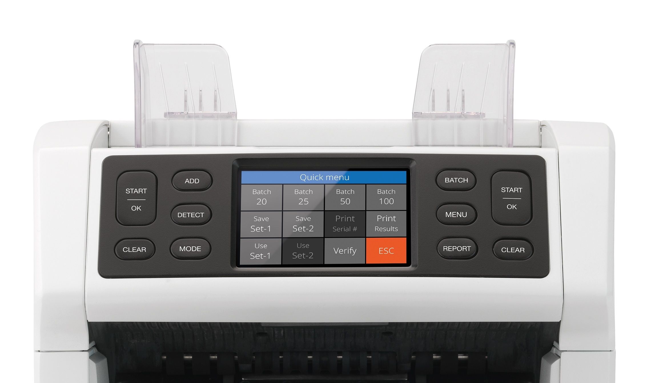 - Creates equal stacks of banknotes with the automated batch function