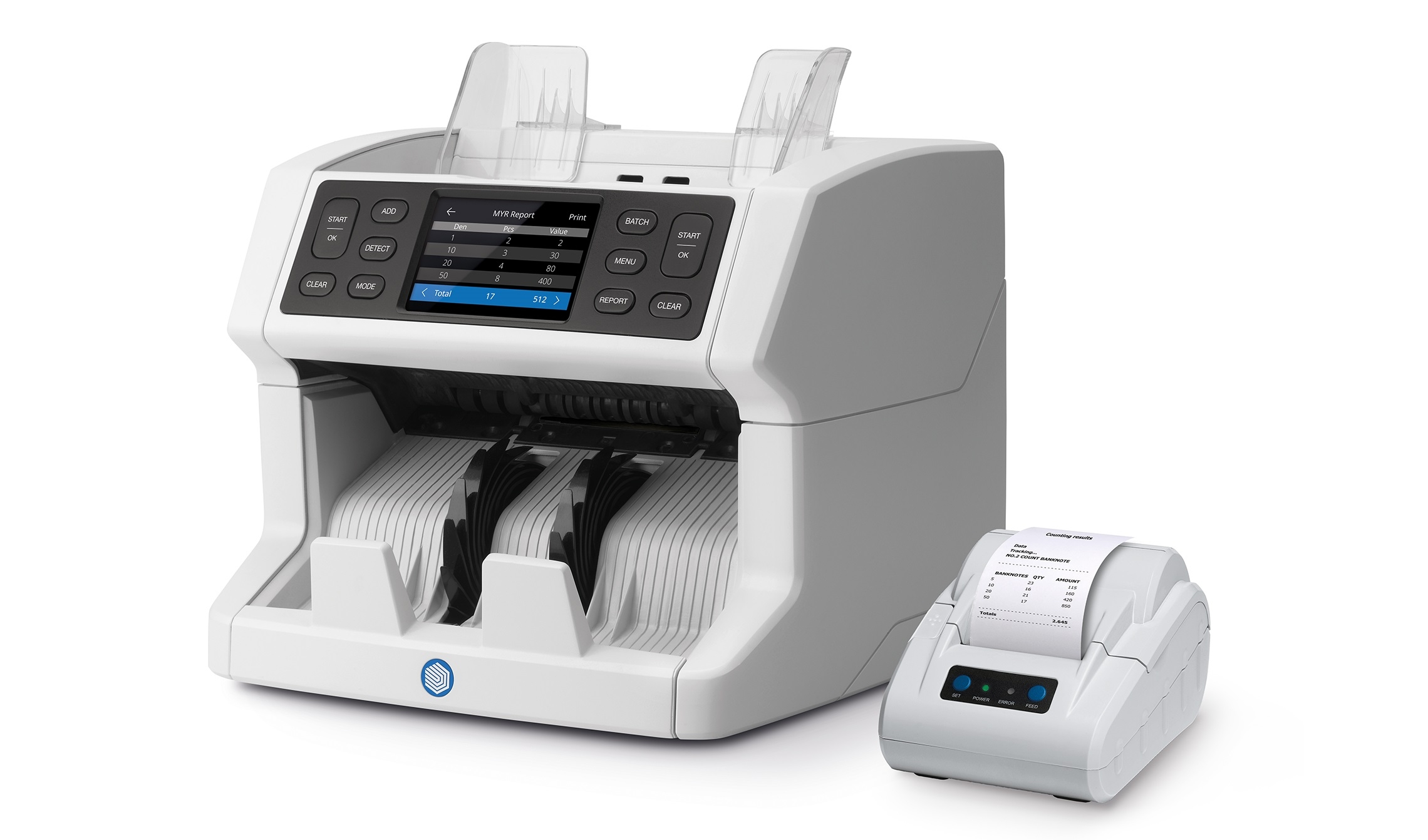 - Scans the tiniest details of banknotes thanks to its double CIS technology