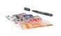 The iodine-based ink in the Safescan 30 reacts with a starch found in all standard papers, but not in the official cotton-based or polymer banknote paper used by central banks worldwide. What’s more, it helps take fake money out of circulation: the pale ink will fade away on genuine banknotes, but leave a permanent purple mark on suspected counterfeits.