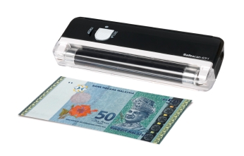 ID'sPortable usageThe Counterfeit Detector can be used without power wire Yes Rechargeable batteryThe battery of the Counterfeit Detector is rechargeable No Dimensions (mm)Sizes of the Counterfeit Detector (LxHxW) 160x56x22 ColorColor of the counterfeit detector Black Weight (kg)Weight of the Counterfeit Detector 0.089 WarrantyWarranty period of the Counterfeit Detector 3 year CE approvedSafescan's Counterfeit Detectors have met EU consumer safety, health or environmental requirements Yes Packed perNumber of similar products in the package 1 Price RM 59 More information Downloads