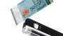 - Powerful white LED flashlight for checking watermark and security strip