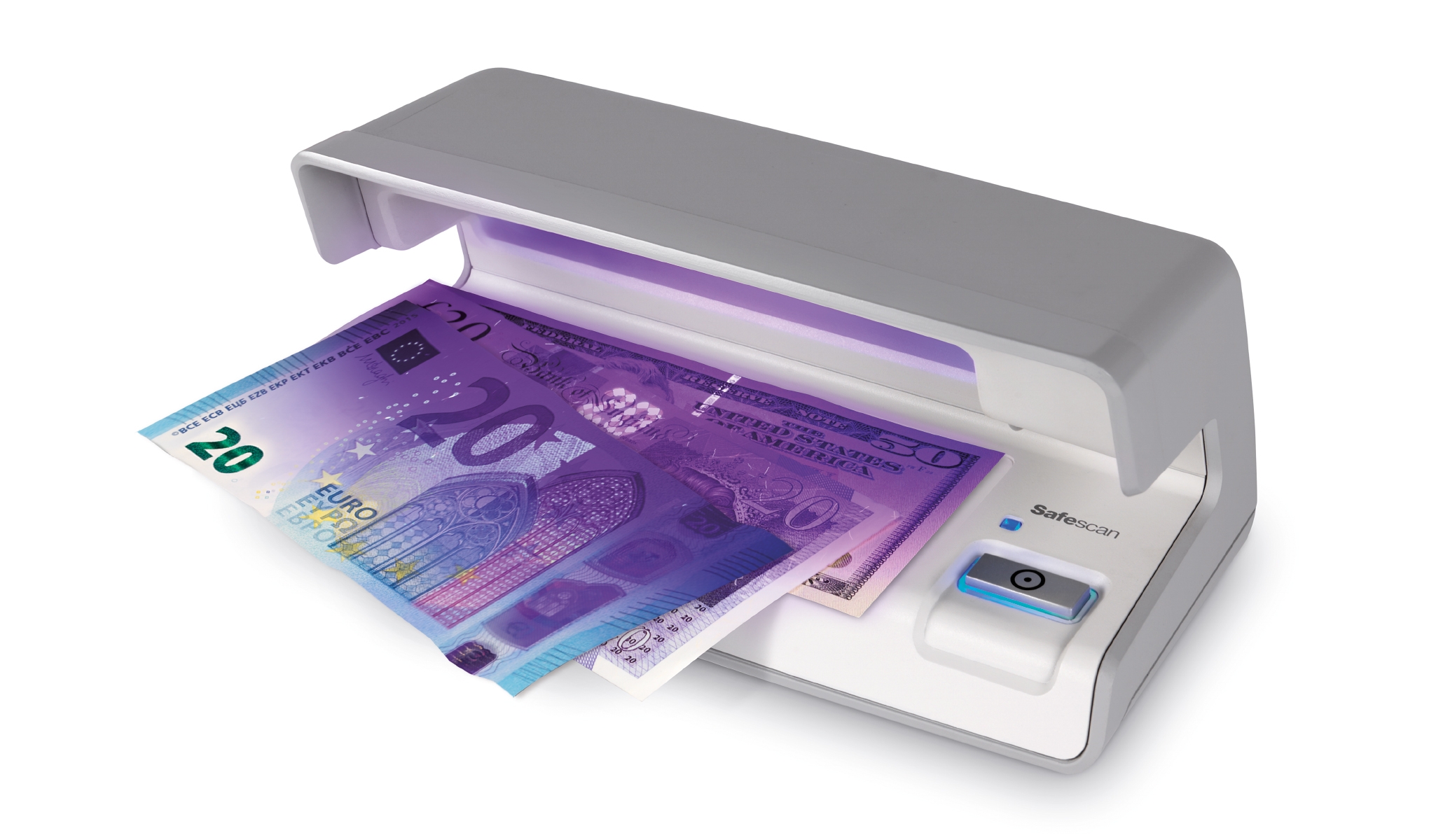Every modern banknote has integrated UV security features that only show up under ultraviolet light at a certain frequency. The Safescan 70 is designed specifically to help you verify these features and identify potentially counterfeit banknotes.
