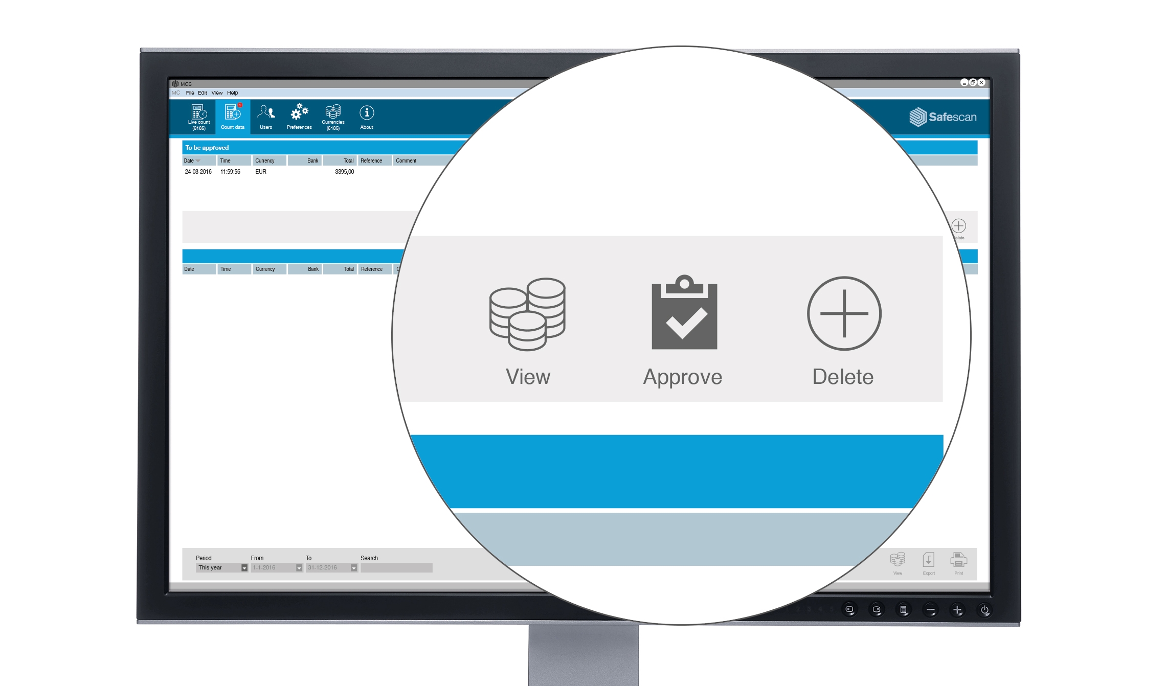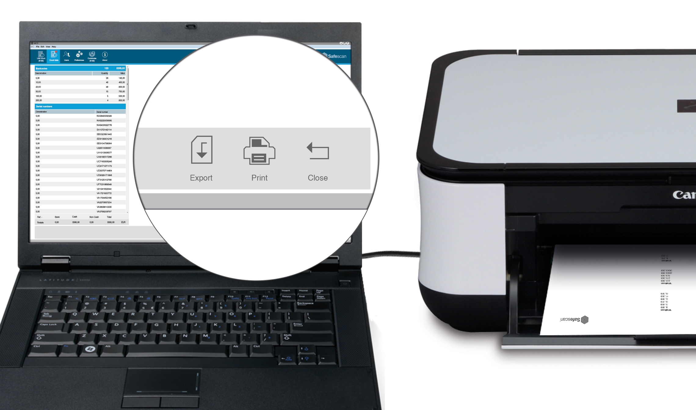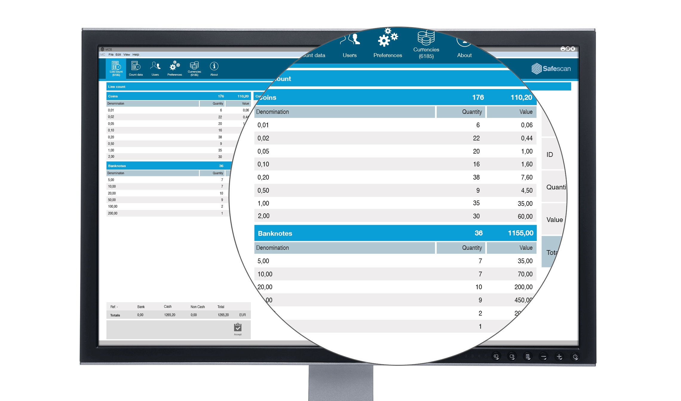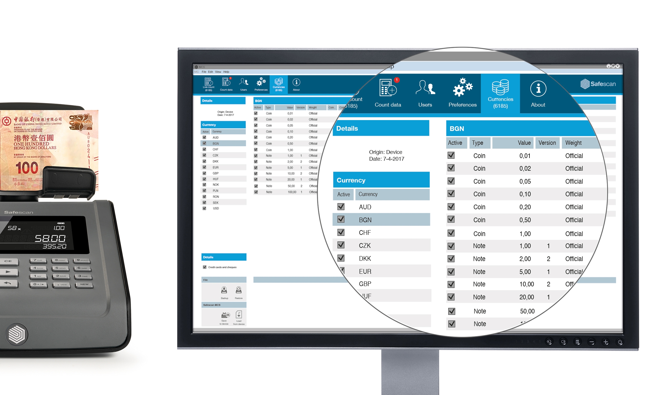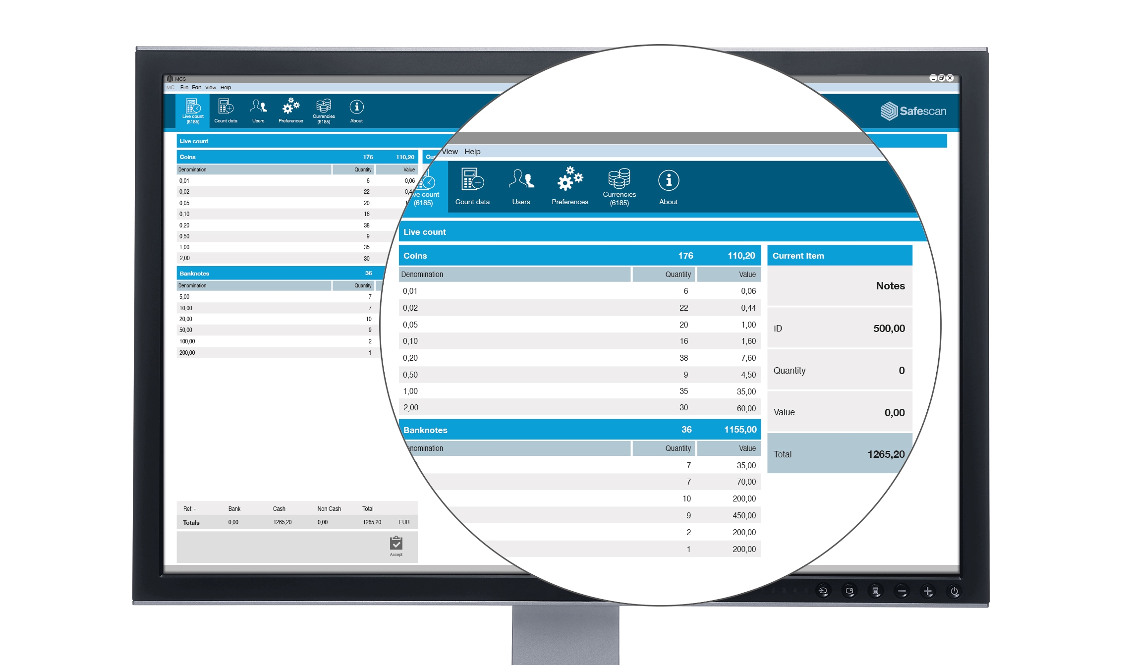 - Live count-function: a count which is performed on Safescan 6165/6185, can be viewed real-time in the software